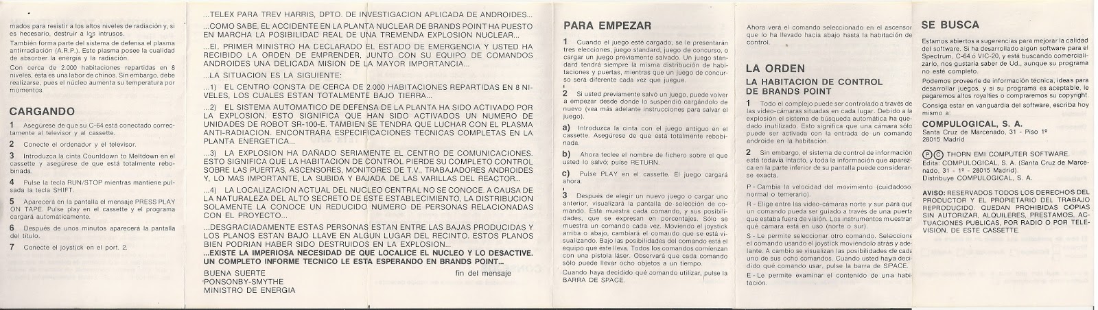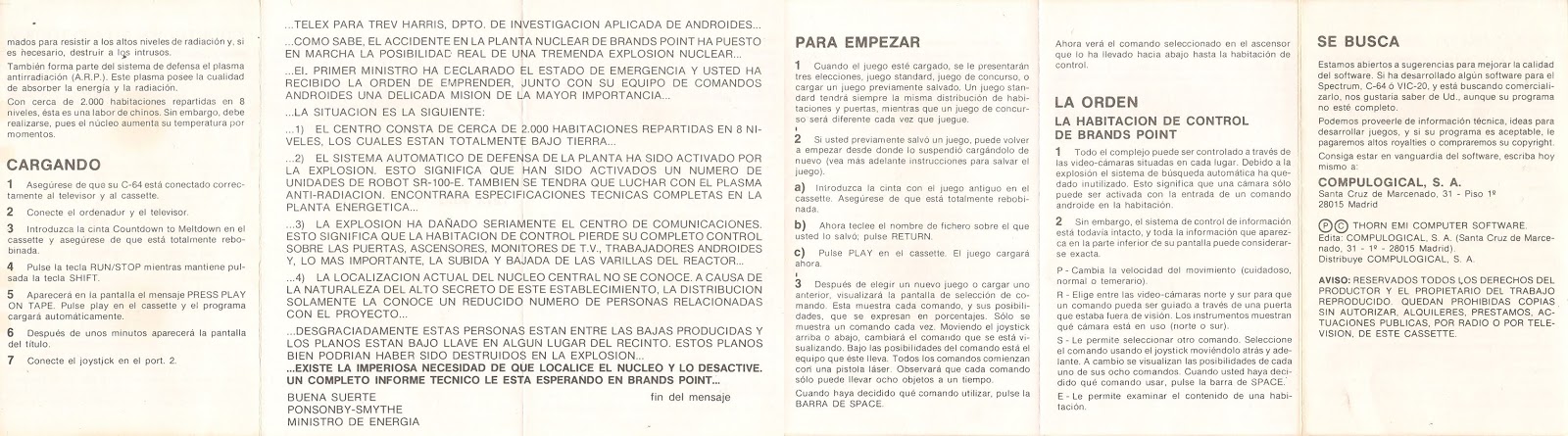Empresa/grupo: Thorn Emi Computer Software - Creative Sparks, Compulogical, S.A., Thorn Emi Computer Software