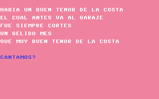 También del libro de Owen Bishop, en este minijuego puedes crear poemas divertidos mientras cantas con la música del Commodore. Pulsa la barra espaciadora cuando quieras un nuevo poema divertido.
