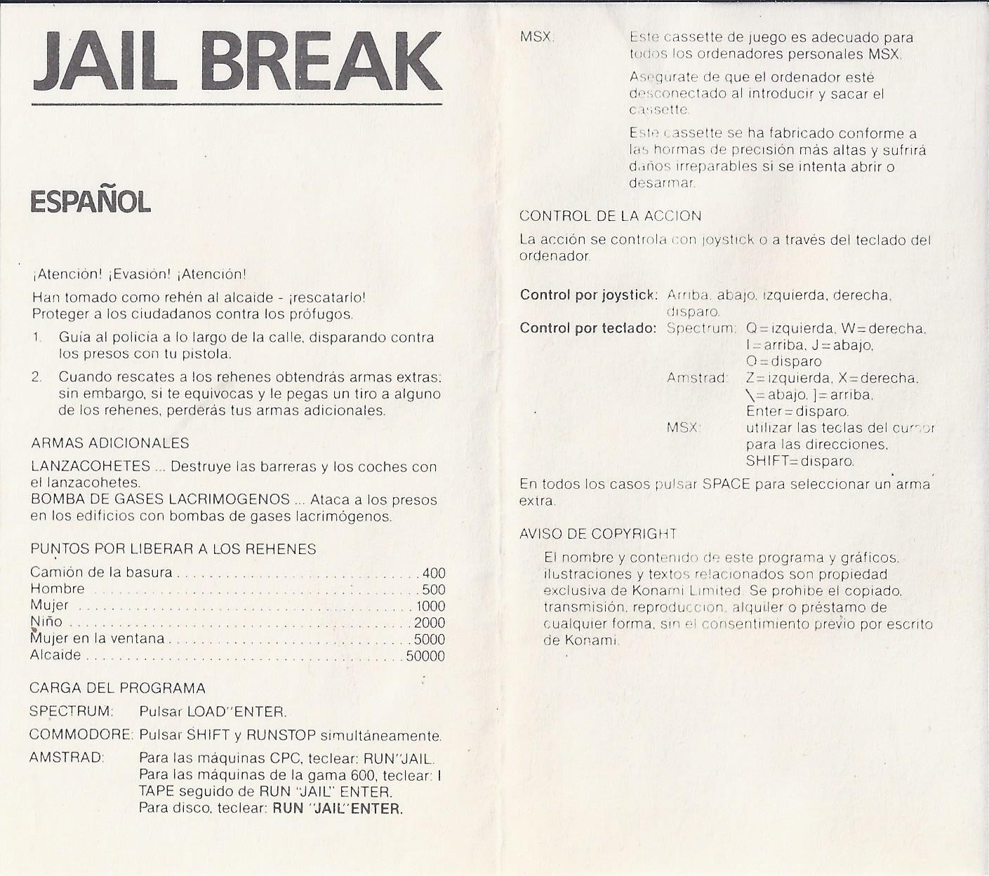 Control: 1 jugador con Joystick en puerto 2
